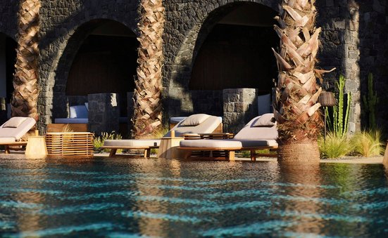 - 31-35 qm, Juniorsuite, Poolblick, Bettwäsche, Handtücher und Matratzen aus 100% Bio-Baumwolle, Doppelbetten (1 Kingsize oder 2 Doppelbetten), Sofabett, Dusche oder Badewanne, Haartrockner, Klimaanlage, Mini-Kühlschrank, Safe, Bügelbrett, Bügeleisen, TV (Smart-TV), Wasserkocher, Kaffeemaschine, Kaffee/Tee, Terrasse, Privatpool
