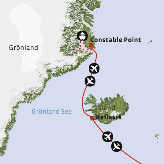 Charterflug von Reykjavík nach Constable Point an die Ostküste Grönlands. Einschiffung auf Ihr Segelschiff «Opal». Die kommenden Tage befahren Sie den eindrücklichen Scoresby Sund, das längste Fjordsystem der Welt.