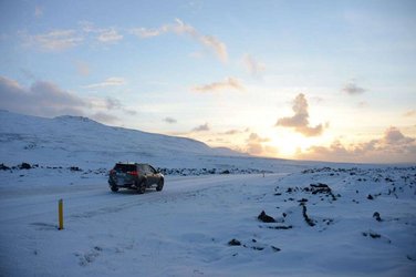 Über die verschneite Sand- und Aschenwüste Jökuldalsheiði gelangen Sie nach Egilsstaðir zu Steff und Isabelle. Drei Übernachtungen in der Hengifosslodge.