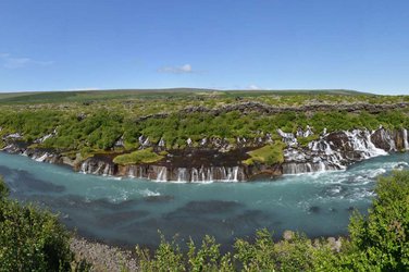In einer malerischen Kulisse finden Sie die Hraunfossar. In über hundert kleinen Wasserfällen strömt Wasser aus dem schwarzen Lavagestein. Weiterfahrt in Richtung Norden. Unterwegs passieren Sie den Krater Grábrók, von welchem Sie eine schöne Aussicht über die Umgebung haben. Eine Übernachtung in der Region Laugarbakki.