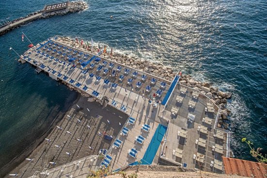 Auf den Klippen thront das stilvolle Hotel, dessen gehobene Ausstattung Sie verzaubern wird. Mit dem Lift erreichen Sie das Meer, dem der attraktiv gestaltete Pool Konkurrenz macht. Ein Shuttle bringt Sie ins hübsche Sorrent, zu Fuß ist es ein Spaziergang von ca. 20 Min.