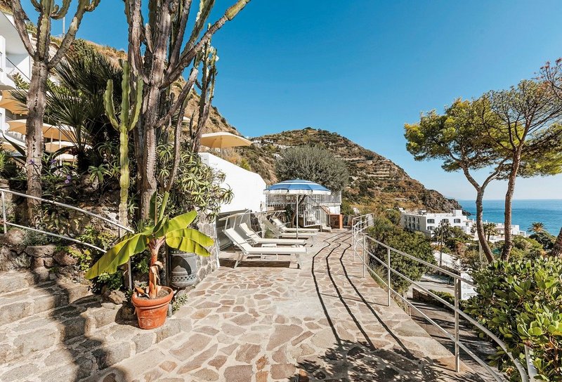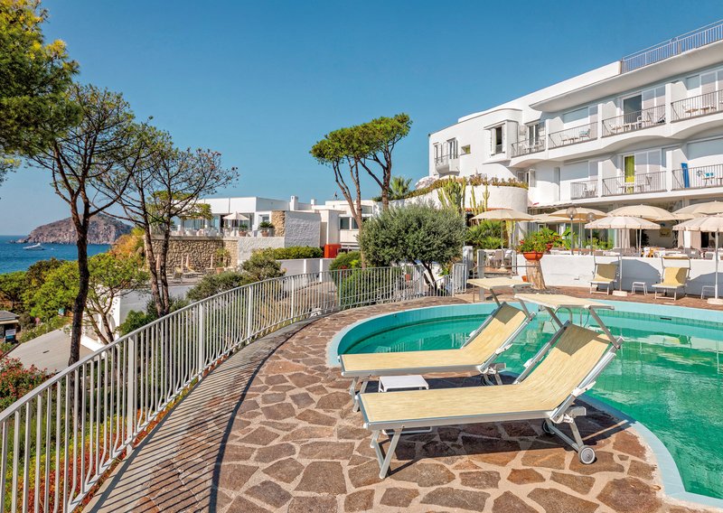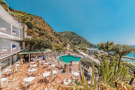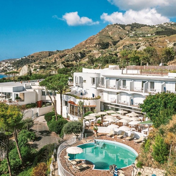 In fantastischer Lage mit Blick auf die Maronti-Bucht – hier finden Sie pure Erholung. Neben dem Privatstrand gibt es Thermalpools und das Thermal SPA. Den wunderbaren Garten können Sie besichtigen und auch kosten: Die Küche verwendet seine Schätze. Köstlich!