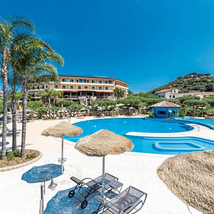 Genießen Sie die Sonne Kalabriens in diesem Aparthotel am Meer. Die Zimmer bieten Balkone mit Meerblick. Auch die weiträumige Außenanlage mit Olivenbäumen und Poollandschaft lädt zum Verweilen ein.