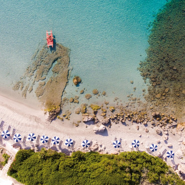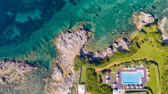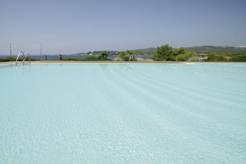 Das Meer auf der einen und ein großer Pinienwald auf der anderen Seite – idyllischer kann ein Hotel kaum liegen. Der private Strandabschnitt gehört zum Strand Le Bombarde, einem der schönsten Sardiniens. Kinder lieben es, hier im seichten Wasser zu spielen!