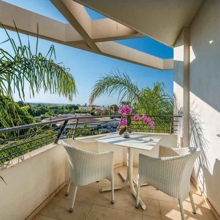 - 46-50 qm, Doppel, Meerblick, Gartenblick, 1 separates Schlafzimmer, separater Wohnraum, 2 Bäder, Regendusche, WC, Bademantel, Badeslipper, Haartrockner, Kosmetikspiegel, Fliesen, Klimaanlage, ca. 15.6.-15.9., Minibar, Safe (kostenpflichtig), TV (Sat-TV), Kaffee/Tee, Balkon (möbliert), Whirlpool