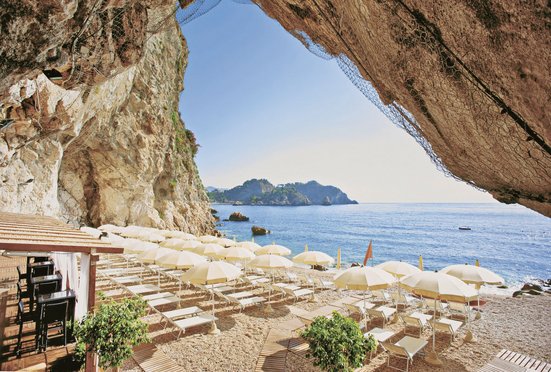 Ihre Vorteile: Direkt am Meer auf einer Landzunge mit wunderschönem Blick auf die „Isola Bella“ und den Ätna
