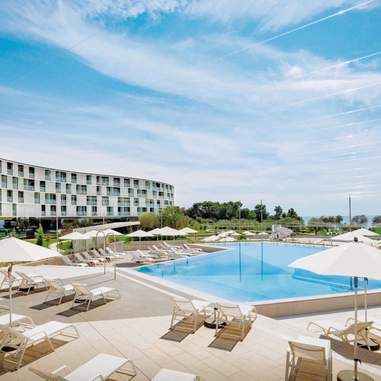 Das elegante Familienhotel mit markanter Architektur lockt mit viel Unterhaltung, Sport und Freizeitaktivitäten. Entspannen Sie am nahen Kies- und Felsstrand unter der Sonne Istriens.