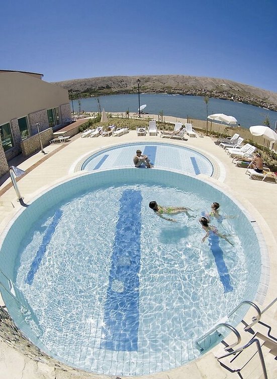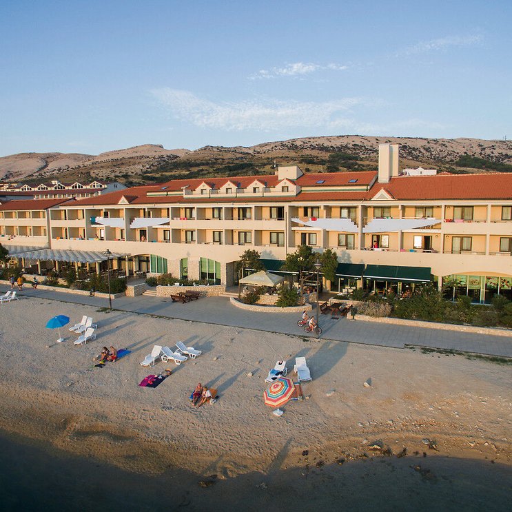 Eines der besten Hotels in Pag mit großem Spa- und Wellnesscenter für Ihre Erholung, toller Strandlage und einer Sonnenterrasse mit Traumblick auf die Bucht – ein Tipp ist zudem das Essen: sehr gut!