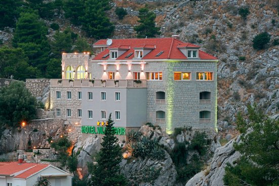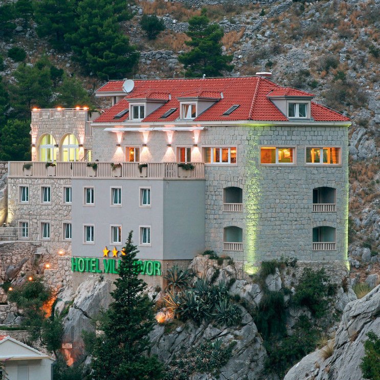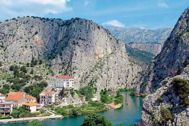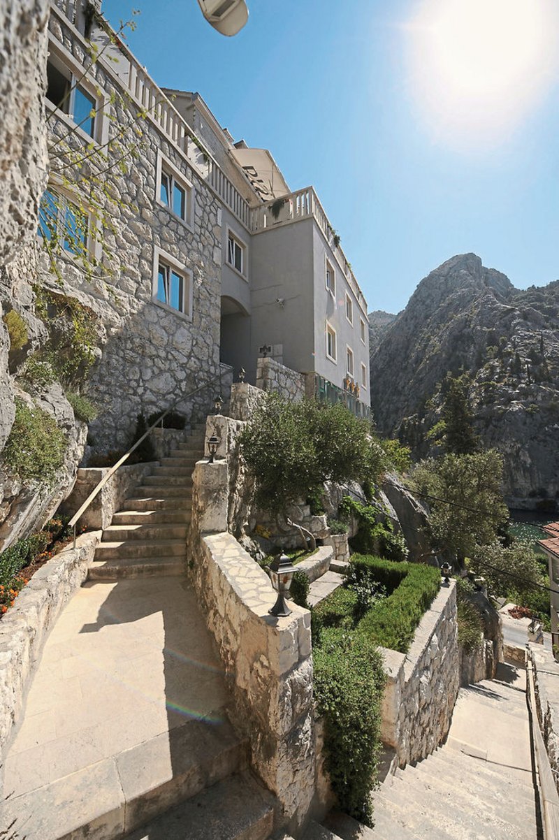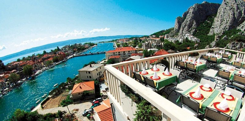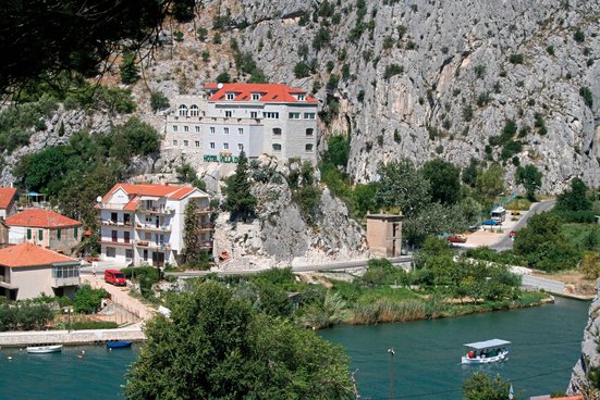 Auf einem Felsen vor der Kulisse gigantischer Felswände, thront das Boutique-Hotel oberhalb des Flusses Cetina, der hier ins Meer mündet. Der Blick reicht weit bis zu den Inseln, die sich in der Adria sonnen. Spektakulär!