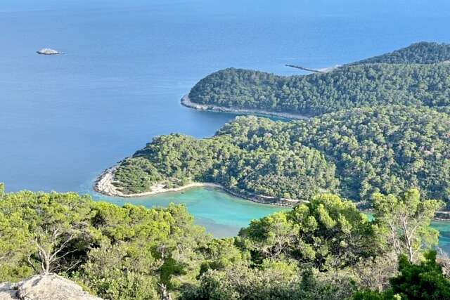 (Montag) Am Morgen segeln Sie zum kroatischen Naturparadies, dem Nationalpark Mljet. Legen Sie am Ponton an und verbringen Sie den Tag mit Schwimmen, Schnorcheln oder Paddleboarding. Optional können Sie an einem Ausflug zum Nationalparks Mljet teilnehmen (der Eintritt in den Park ist für Gäste in diesem Ausflugspaket enthalten). Sie können entlang der schattigen Wanderwege radeln (Fahrräder fakultativ) oder spazieren gehen. Auch Kajakfahren auf dem See ist möglich (fakultativ). Für einen entspannten Aufenthalt im Park bietet sich das Schwimmen im warmen Wasser des Sees an. Wenn Sie gerne wandern, empfehlen wir eine Wanderung von Polace zum Aussichtspunkt Montokuc (ca. 1 Stunde) und dann Abstieg nach Soline (ca. 30 Minuten). Spazieren Sie entlang des Grossen Sees zum Fährhafen (ca. 2,5 km am Ufer des Grossen Sees entlang) und machen einen Badestopp auf der Grossen Brücke. Am Fährhafen nehmen Sie einen Solarkatamaran zur Insel St. Mary im Grossen See, der gegen 17:00 Uhr ablegt. Nach Ankunft auf der Insel St. Mary können Sie die Kirche und die Insel besichtigen. Um 18:30 Uhr Rückfahrt mit dem Boot von der Insel St. Mary zum Fährhafen und Spaziergang nach Polace (ca. 40 Minuten).