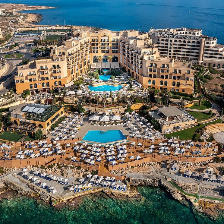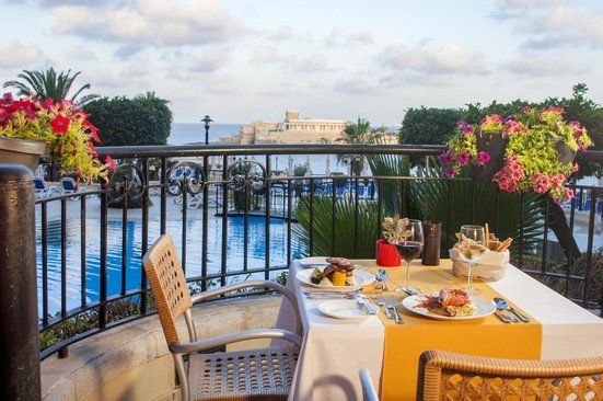 Nicht nur Freunde des Wassersports lieben den Luxus der großzügigen Hotelanlage in St. Julian. Neben Privatstrand und Hotelpools locken Restaurants und Bars, um einen Urlaubstag ausklingen zu lassen.