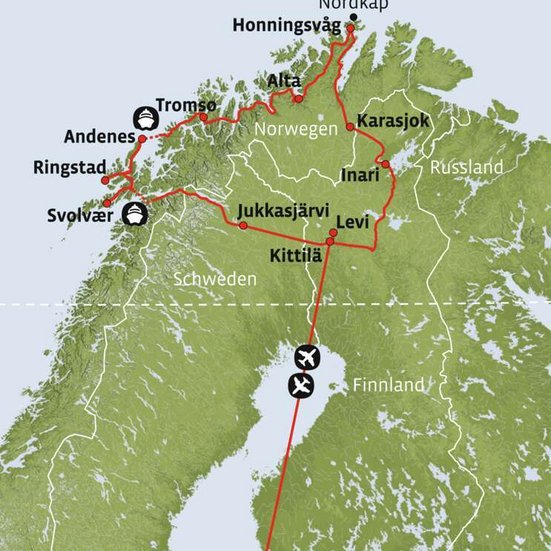 Der heutige Tag startet mit einigen kurzen Fährpassagen. Danach geht die Reise weiter durch die Tundralandschaft der Finnmark bis zu Ihrem Tagesziel nach Alta. Tauchen Sie ein in die Welt der Sami und besuchen Sie die unter UNESCO-Schutz stehenden Felszeichnungen. Unweit Ihres Hotels steht zudem die imposante Nordlicht Kathedrale. Besonders auch das Museum zum Thema Nordlicht im Untergeschoss der Kathedrale ist ein Besuch wert.