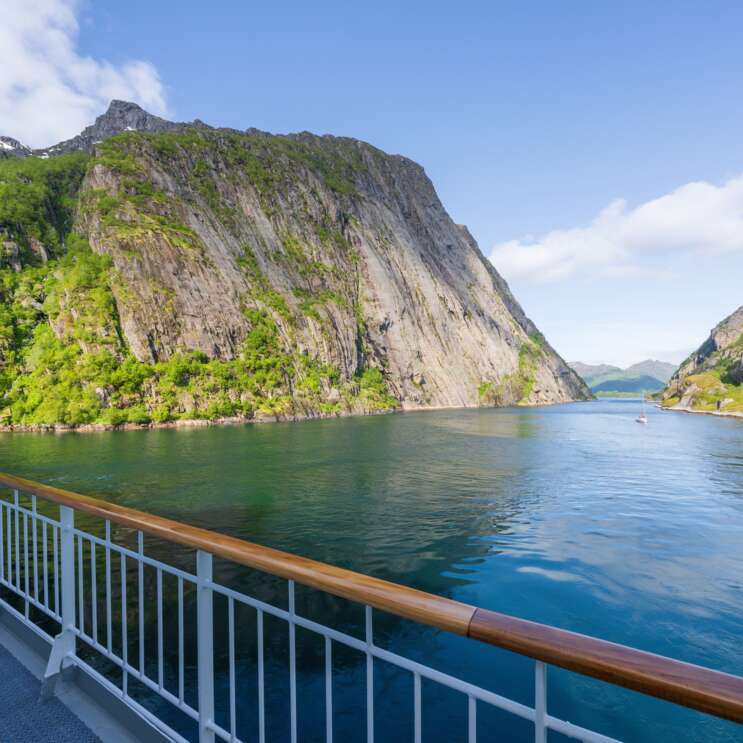 Auf der Route von Kirkenes nach Bergen erwartet Sie eine abwechslungsreiche Landschaft. Auf den ersten Blick wirken die schroffen Felsen im Norden karg, aber genau das hat seinen Reiz, denn hier leben unzählige Vögel. Weiter Richtung Süden wird es immer grüner. Um viele Felsformationen ranken sich Sagen, von denen Ihnen der Bordreiseleiter erzählt.
