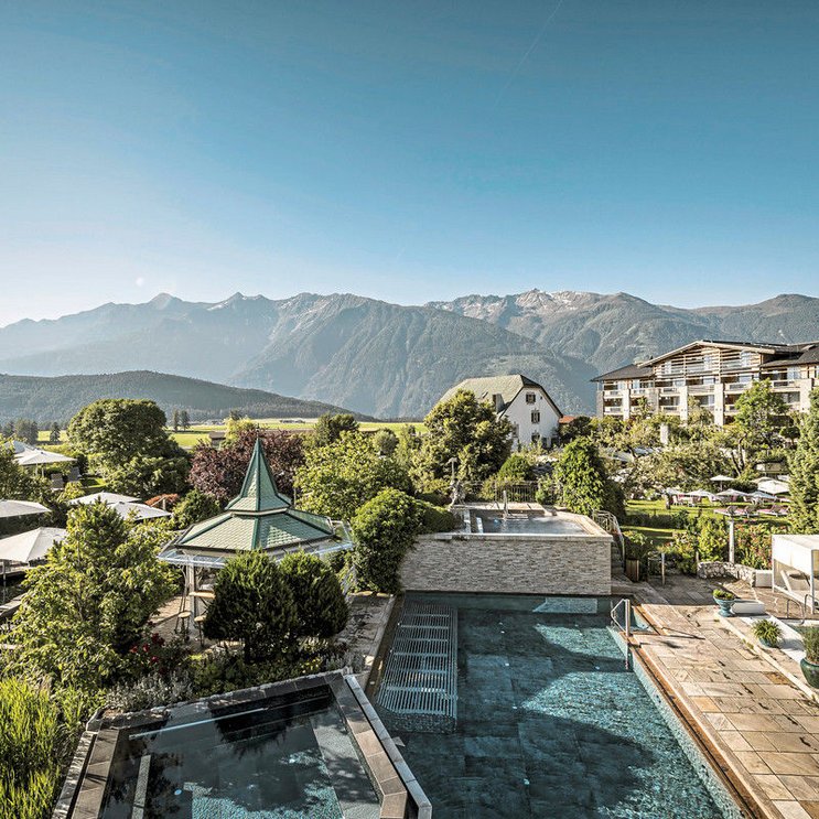 - Saunadorf: Schwarz Saunadorf mit 7 Sauna- und Wärmekabinen (z.B. Bergseesauna, Meditations-Sauna und Tiroler Schwitzstube), 7 Ruheräume (z.B. Weitblick Ruheraum, Zirben Ruheraum mit Wasserbetten und Infrarot Ruheraum), Warmwasserpool und Bergsee