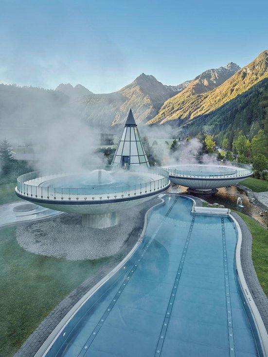 Das modernste und architektonisch beeindruckenste Thermen-Resort der Alpen, im Herzen des Ötztals gelegen, punktet mit einer futuristisch, anmutender Wasser- und Saunawelt, SPA & Fitness, Kinderbereich, sowie einem Premium „SPA 3000“ Bereich der exklusiv für AQUA DOME Hotelgäste reserviert ist.