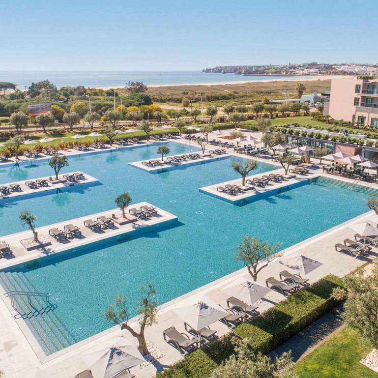 Unweit des Freizeitparkes von Lagos befindet sich dieses gehobene Hotel. Die Zimmer bieten Balkon oder Terrasse und verfügen teilweise über Meerblick. Restaurants, Spa, und Pool runden das Angebot ab.