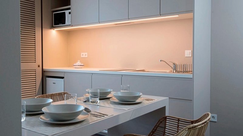- 41-45 qm, Suite, optisch getrennter Wohn-/Schlafraum (mit Schiebetür), Schreibtisch, Sofabett, Dusche, Haartrockner, Klimaanlage, Minibar kostenpflichtig, Safe, TV, WLAN, Kochnische, Wasserkocher, Mikrowelle, Kaffee/Tee, Kühlschrank