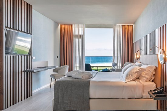 - 36-40 qm, Familien, Meerblick, Sitzecke, 2 Doppelbetten (Queensize), Badewanne, Bademantel, Badeslipper, Haartrockner, Klimaanlage, Minibar kostenpflichtig, Safe (kostenpflichtig), TV, WLAN, Wasserkocher, Espressomaschine, Balkon oder Terrasse (möbliert)