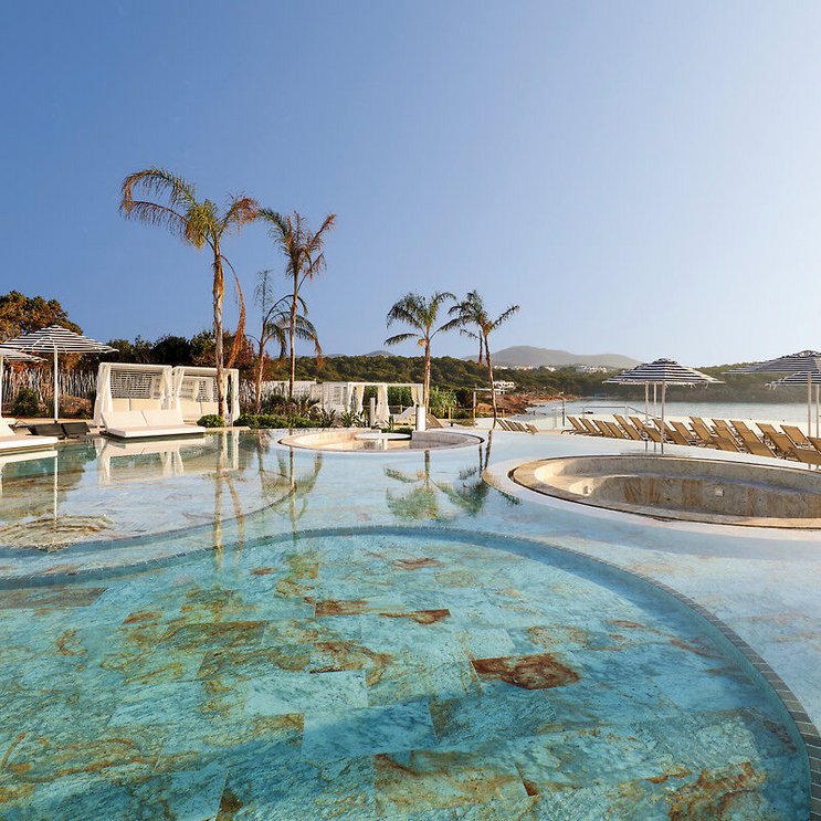 Kosmopolitisches Lifestyle-Hotel auf den Klippen über der Bucht Cala Nova mit spektakulärem Meerblick. Das Interieur ist von Coco Chanel inspiriert, die Küche leitet ein Sternekoch und statt Frisör gibt es ein Hair Spa. Wie geschaffen für Hedonisten.