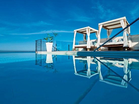 • Dachterrasse mit Pool, Bar und Blick auf das Meer