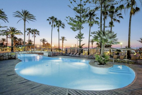 - Sandstrand: flach abfallend, öffentlich, von der Anlage getrennt durch Promenade, Sonnenschirme (kostenpflichtig), Liegen (kostenpflichtig)