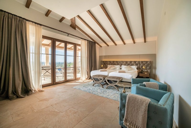 - 56-63 qm, 51-60 qm, Juniorsuite, Deluxe, Twinbett (Kingsize), offenes Bad im Zimmer, Dusche, Bademantel, Badeslipper, Haartrockner, Kamin, Minibar kostenpflichtig, Safe, TV (Sat-TV, Flachbildschirm), WLAN, Espressomaschine, Terrasse (möbliert), Whirlpool, hochwertige Badartikel, kostenfreier Zutritt zum Spa/Wellnessbereich, Pooltuch, bei Ankunft im Zimmer Wasser, Flasche Sekt