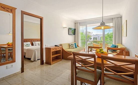 - 36-40 qm, Appartement, Standard, Poolblick, 1 separates Schlafzimmer, kombinierter Wohn-/Schlafraum, Sofabett, bodengleiche Dusche, Haartrockner, Klimaanlage, Safe, 1 TV (Sat-TV, Flachbildschirm), WLAN, Kochnische, Wasserkocher, Mikrowelle, Espressomaschine, Toaster, Kühlschrank, Balkon < 10 qm (möbliert)