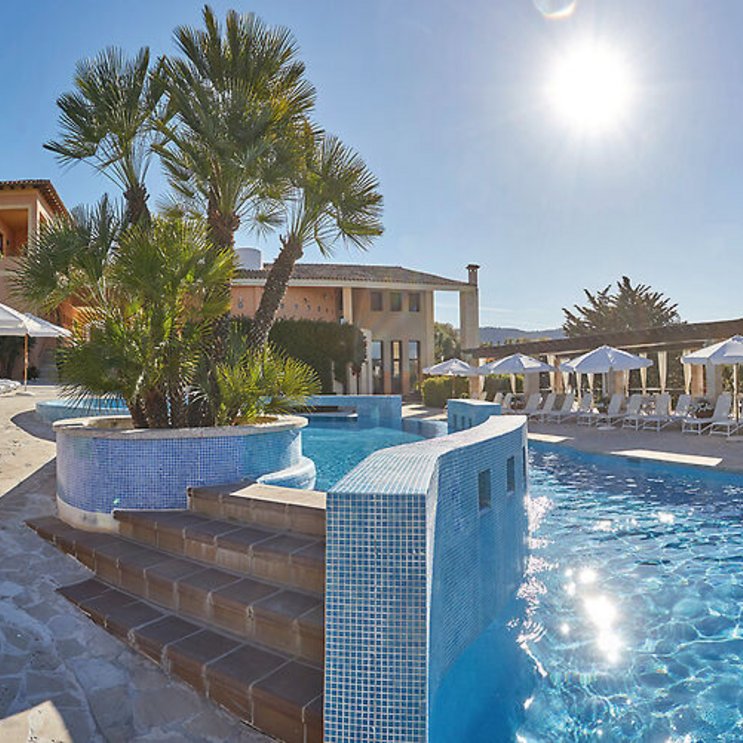 Wiesen, Felder, Olivenbäume und der 18-Loch-Golfplatz Pula Golf in der Nachbarschaft machen den Reiz des Finca-Hotels aus. Ruhe und landestypische Gemütlichkeit treffen hier auf zeitgemäßen Komfort.