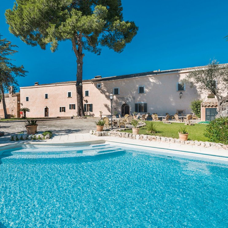 Das kleine Landhotel liegt in der Mitte Mallorcas im kleinen Dorf Ruberts. Radsportler starten direkt von hier ihre Touren. Im Garten mit alten Bäumen und bunten Blüten laden der Swimmingpool sowie eine Terrasse mit Liegen und Sonnenschirmen zum Relaxen ein.