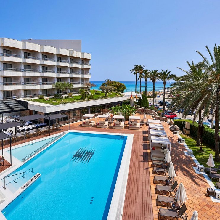 - Sandstrand: flach abfallend, öffentlich, von der Anlage getrennt durch Promenade, Sonnenschirme (kostenpflichtig), Liegen (kostenpflichtig)