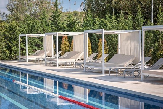 Umgeben von herrlicher Naturlandschaft, finden hier vor allem Sportliche und Familien ihr Urlaubsglück. Verschiedene Sportplätze und sogar ein 25-Meter-Becken locken zum Auspowern.