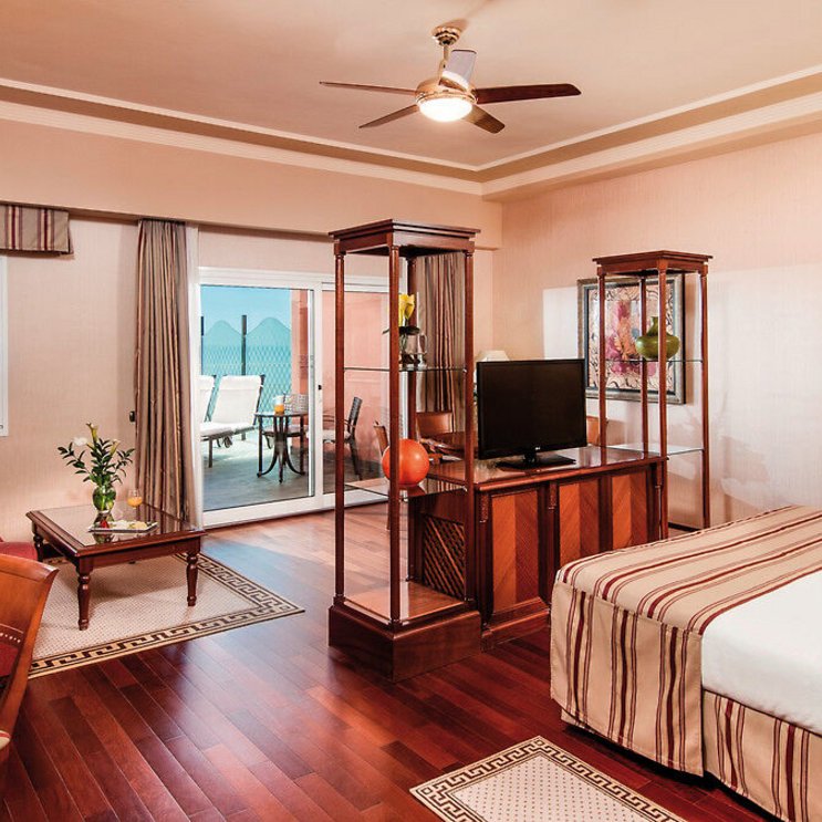 - 51-60 qm, Juniorsuite, Meerblick, Dusche oder Badewanne, WC, Haartrockner, Klimaanlage, Minibar kostenpflichtig, Safe, TV, Wasserkocher, Kaffee/Tee, Balkon oder Terrasse