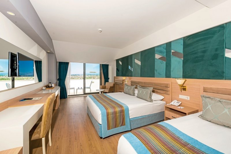 Der Ausblick auf das Meer, die Halbinsel von Side und die Berge im Inland ist herrlich. Wem das Treiben im Aquapark zu bunt ist, genießt die Ruhe am Relaxpool, der Gästen ab 18 Jahren vorbehalten ist.