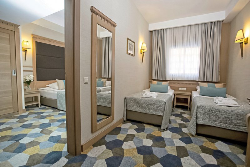 - mit Verbindungstür, 2 Schlafzimmer, 2 Bäder, Dusche, WC, Haartrockner, Klimaanlage, zentral gesteuert, Minibar, Auffüllung regelmäßig, Softdrinks, Safe, 1 TV (Sat-TV), Wasserkocher, Balkon