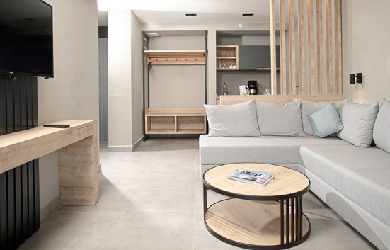 - 31-35 qm, Familien, mit Verbindungstür, separates Schlafzimmer, kombinierter Wohn-/Schlafraum, Sitzecke, Twinbett, Sofabett, 1 Bad, Dusche, 1 WC, Haartrockner, Kosmetikspiegel, Fliesen, Klimaanlage, individuell regulierbar, Mini-Kühlschrank, Safe, 1 TV (Sat-TV), Wasserkocher, Kaffee/Tee, Balkon (möbliert)