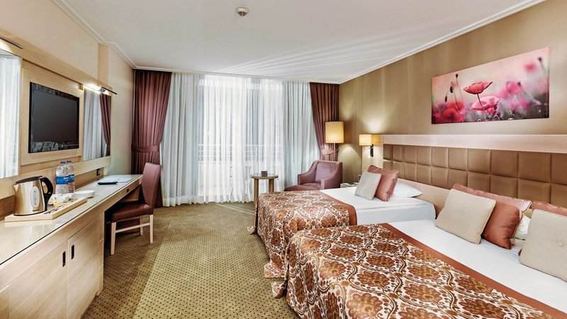 - Zweibett, 1 Schlafzimmer, Hauptgebäude, Landblick, 1 Bad, Dusche, 1 WC, Bademantel (kostenpflichtig), Haartrockner, Klimaanlage, zentral gesteuert, Minibar, Auffüllung regelmäßig, Safe, 1 TV (Sat-TV), Telefon, WLAN, Balkon (möbliert)