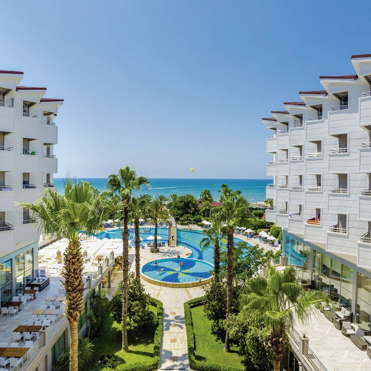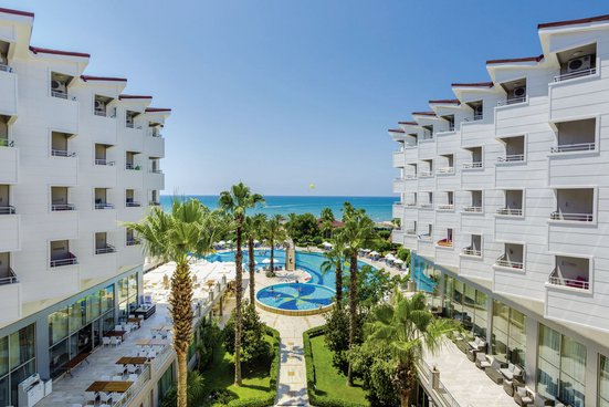 Willkommen in Ihrem Badeurlaub direkt am hoteleigenen Strand von Side! Wer Meer und Sonne genießen und sich dazu in Sachen Service und Verpflegung verwöhnen lassen möchte, ist hier goldrichtig!