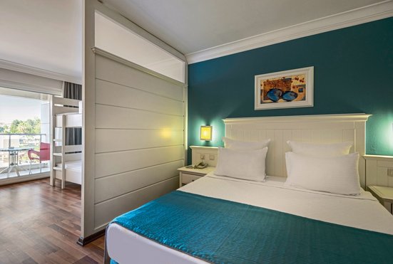 - Großraum, Landblick, optisch getrennter Wohn-/Schlafbereich, Etagenbett, 1 Bad, Dusche, 1 WC, Haartrockner, Laminatboden, Klimaanlage, zentral gesteuert, Minibar, Auffüllung regelmäßig, Safe, 1 TV (Sat-TV, Flachbildschirm), Telefon, Wasserkocher, Balkon