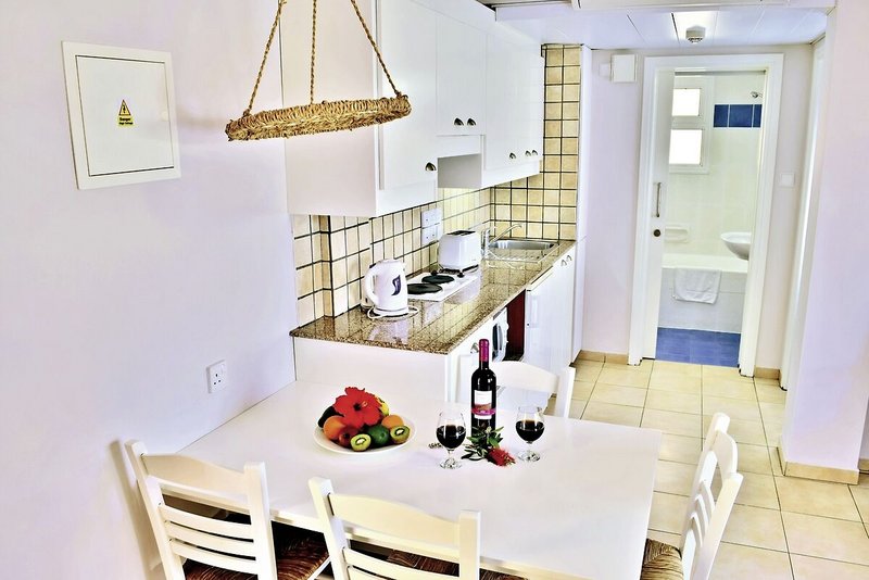 - 41-45 qm, Appartement, 1 Schlafzimmer, 1 separater Wohnraum, 1 Doppelbett, 2 Sofabetten, Dusche oder Badewanne, WC, Haartrockner, Klimaanlage, Heizung, Safe (kostenpflichtig), TV (Sat-TV, Flachbildschirm), Telefon, Kochnische, Essecke, Gas-/E-Herd (2 Kochplatten), Wasserkocher, Toaster, Kühlschrank, Balkon (möbliert)