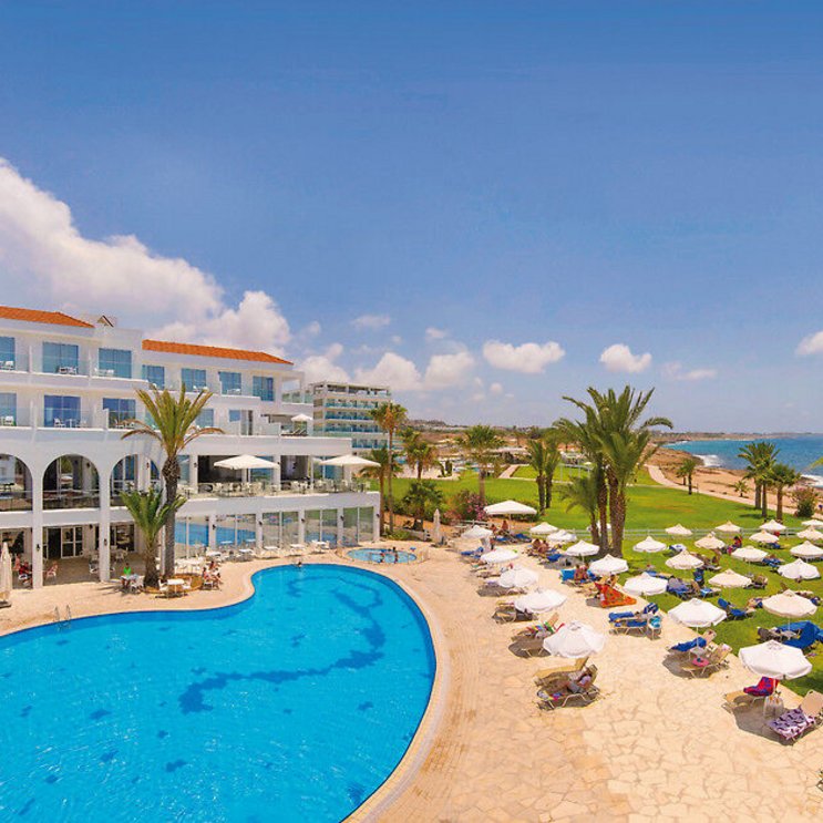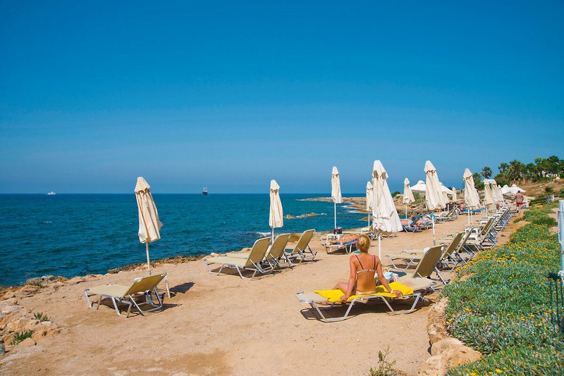 Vom hoteleigenen Palmengarten mit Blumen und Kräutern öffnet sich der Blick auf einen der schönsten Strände am Mittelmeer. Im Akti Beach Village in Paphos erwartet Sie vollkommene Entspannung.
