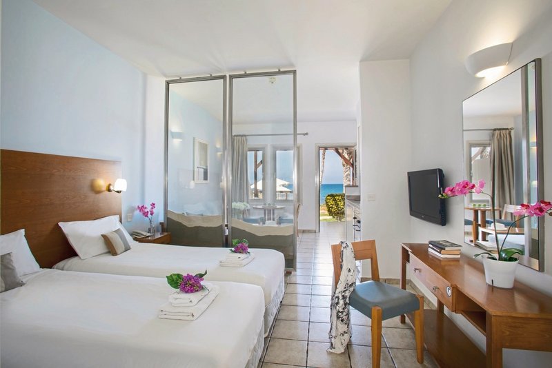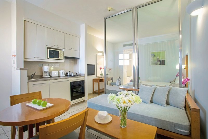 - 31-35 qm, Studio, Meerblick, optisch getrennter Wohn-/Schlafbereich, 1 Twinbett, 1 Sofabett, Badewanne, WC, Haartrockner, Klimaanlage, ca. 01.05.-31.10., Heizung, ca. 01.04.-30.04., Safe, TV (Sat-TV, Flachbildschirm), Telefon, Kochnische, Kaffeemaschine, Kaffee/Tee, Kühlschrank, Balkon oder Terrasse (möbliert)