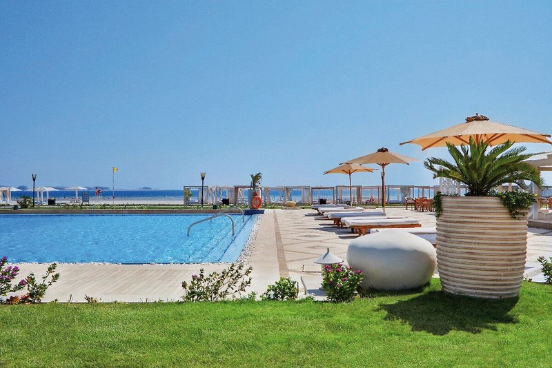 - 46-50 m², vue sur la mer, vue sur le jardin, vue sur la piscine (latéral), lits jumeaux, lit double, douche, baignoire, WC, sèche-cheveux, climatisation, chauffage, minibar, coffre-fort, TV (TV par satellite), bouilloire, balcon ou terrasse