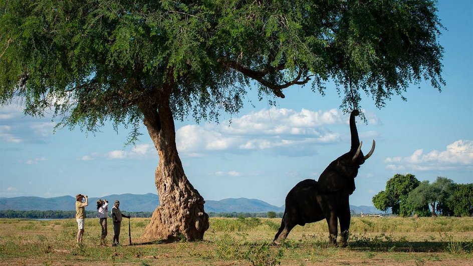 2ᴱ JOUR: Parc national de Mana Pools. Vous explorez cette région isolée et peu développée lors de safaris en véhicule ouvert et à pied. Laissez-vous enchanter par cette expérience pure et intacte. Entre les activités, vous vous détendez au bord de la piscine, dans votre tente ou vous cherchez un coin ombragé dans l'un des salons et vous observez ce qui se passe au point d'eau. Nuitée Kanga Expeditions ou sim. (PdDS)