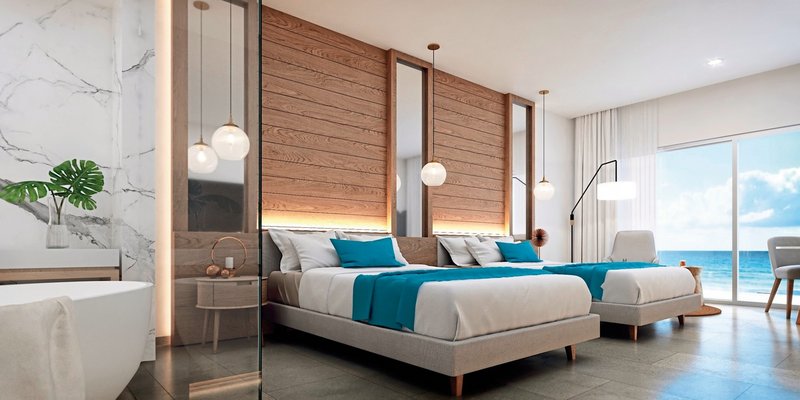 • 51-60 m², Junior Suite, lits double (1 lit king-size ou 2 lits queen-size), lits superposés, 1 salle de bains, douche, douche à effet de pluie, WC, sèche-cheveux, miroir cosmétique, minibar, remplissage quotidien, soft drinks, bière, eau, coffre-fort, TV (TV câblée), machine à café, terrasse (meublé), accès direct à la piscine, piscine partagée, service de réveil nocturne