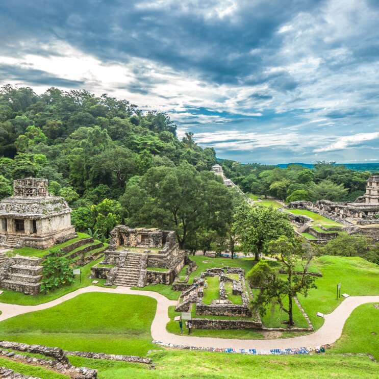 Visite de la cité mystique en ruines de Palenque, en- fouie dans la jungle et considérée comme l'un des sites cultuels les plus magnifiques des Mayas. Lors d'une visite à travers ce fascinant complexe de temples, vous découvrez la pyramide des Inscriptions ornée de plus de 620 hiéroglyphes et de l'histoire de Pacal, le plus important souverain de Palenque. Tout aussi impressionnants sont le temple du Soleil et le temple du Nord avec leurs vestiges en stuc et leurs scènes de guerre. À travers un paysage de brousse et de vastes zones d'élevage de bétail, vous arrivez à Campeche dans le Golfe du Mexique.