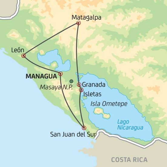 Départ pour Managua, restitution de la voiture de location et poursuite individuelle du voyage (160 km).