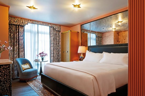 • 46-50 m², suite, lit double (king-size), canapé-lit, douche ou baignoire, WC, peignoir, sèche-cheveux, climatisation, minibar payant, coffre-fort, TV, machine à espresso, fenêtre du sol au plafond