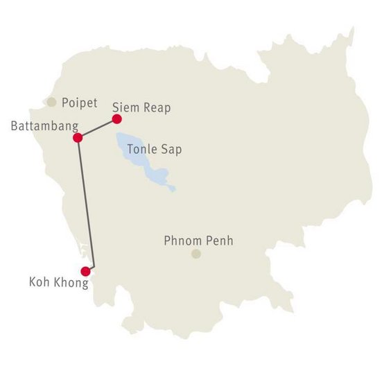 Un tuyau secret! Par la route, hors des sentiers battus, vous vous rendez à Battambang, avec ses beaux bâtiments coloniaux, et continuez vers le sud, au cœur des montagnes Cardamon. Réjouissez-vous de découvrir une nature magnifique et quasiment intacte.