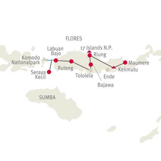 Flores représente des paysages grandioses, des plages de rêve, des villages mégalithiques, des coutumes et des rites ancestraux, le tout mêlé à la foi catholique. Sans oublier les varans ancestraux de Komodo.