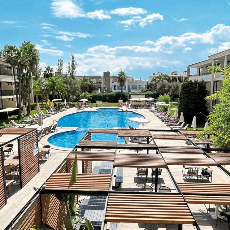 - 26-30 m², chambre double, superior, étage, 1er, 2e, vue sur la piscine, rénové (2025), lit double (queen-size), douche de plain-pied, sèche-cheveux, climatisation, mini réfrigérateur, coffre-fort, TV (TV par satellite, smart-TV), Wi-Fi, bouilloire, balcon (meublé), à l'arrivée en chambre eau